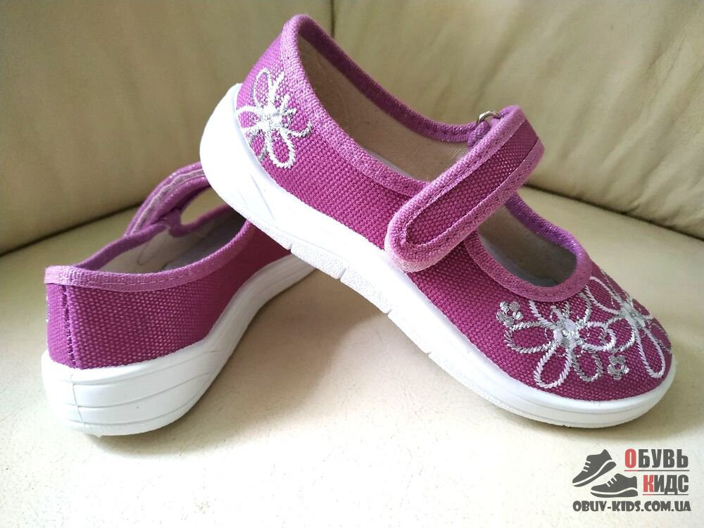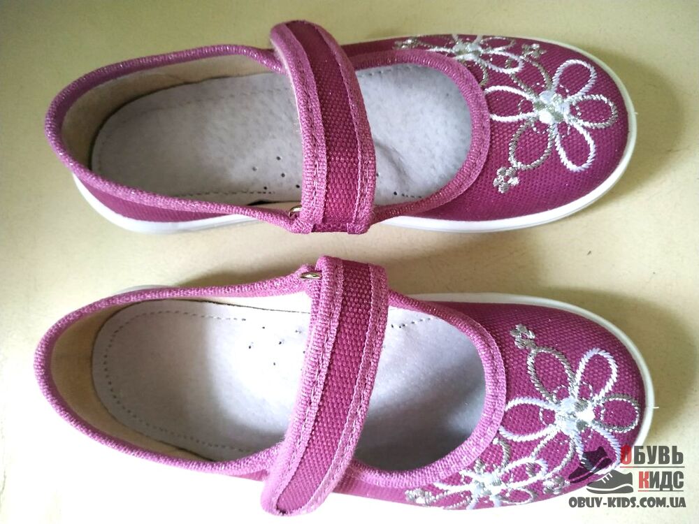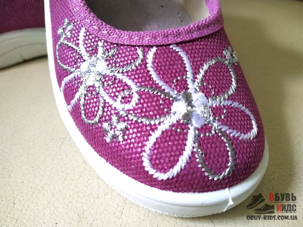 Опис взуття - Текстильні капці Валді для дівчинки. Гарний, ніжний малюнок – вишивка із сріблястими серцями. Це повноцінне взуття для прогулянок на вулиці у теплі весняні та літні вечори. Дуже вигідна альтернатива купівлі сезонного взуття за ціною домашнього