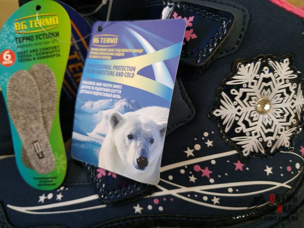 Опис взуття - НОВИНКА Качественная детская обувь B&G Верх-искусственная кожа, текстиль. Внутри-термо мембрана, натуральная шерсть Ботинки застёгиваются при помощи липучек, язычок вшит, что препятствует попаданию снега внутрь Яркая модель для стильной девочки